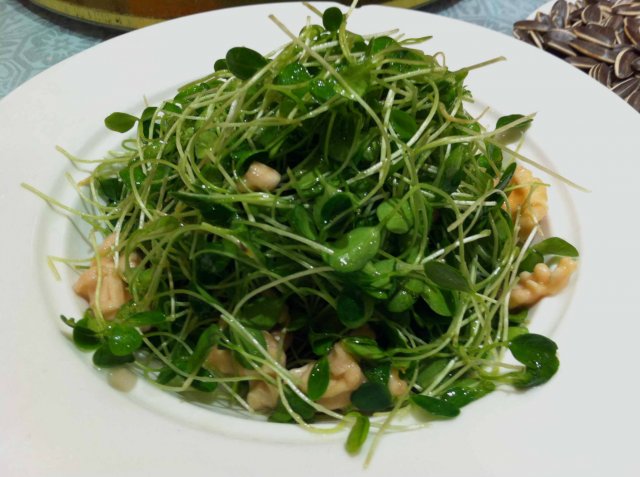 我又看错了,还以为是松仁玉米~这个疙瘩电视还特别介绍是紫光园的当家菜,我一向不爱面食,不好判断好坏,但得到我妈的肯定,而且他家用料不马虎,疙瘩里确实看到了小虾仁和指甲盖大小的海参。
