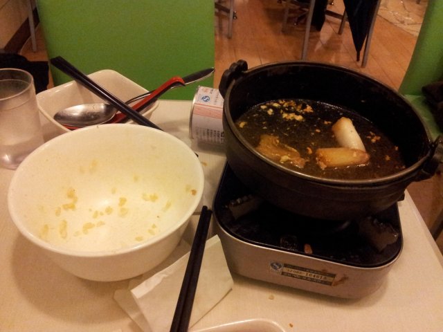 @松屋寿喜烧/35块,寿喜烧我还是蛮喜欢吃的,这种甜甜的火锅平时吃的也不多,记得第一次吃的时候我还是觉得很赞的,原来甜味的火锅也可以做的那么好吃,吃了几次发现大家到都做得差不多,差距倒不大。他们家也是,那个汤水味道不错,就是里面的豆腐质量不行,有股豆腥味,牛肉一般,金针菇有点少,不过总的量都比较少。加的那个生鸡蛋感觉还蛮好的,因为打出来那个蛋黄非常黄,不过我也不是很懂啦