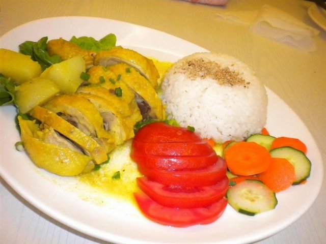 鸡腿颇嫩,但是又因为尝不出明显的咖喱味,调味也淡,