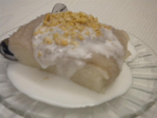 整体搭配还是满不错的,口味其实很简单,混着椰浆,吃带着香芋风味的甜糯米,咸味的花生碎不时在嘴里嚼出来。
