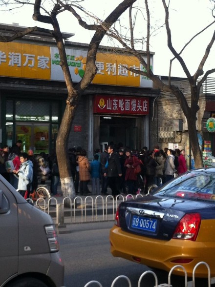 这家呛口馒头在便利超市下面一个很小的角落里,但是排队的人确实络绎不绝,经不住好奇,我也去排了一回。。不过基本上都是一些大爷,大妈,还有一些和我一样好奇究竟是怎样好吃的馒头的大傻二们~~~