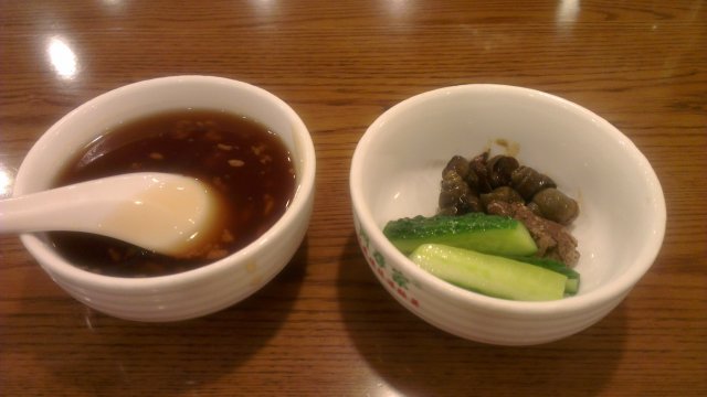等菜的时候有随便吃的小菜,说的泡椒凤爪呢,,,我就想吃这个,居然也没有,,最后发现黄瓜不错,吃了好一些,其他的就不想吃了,桂花酒酿不错,很香,味道也不错,吃了一会儿小菜,差不多就饱了,,可素我居然要的是两份杠杠的主食
