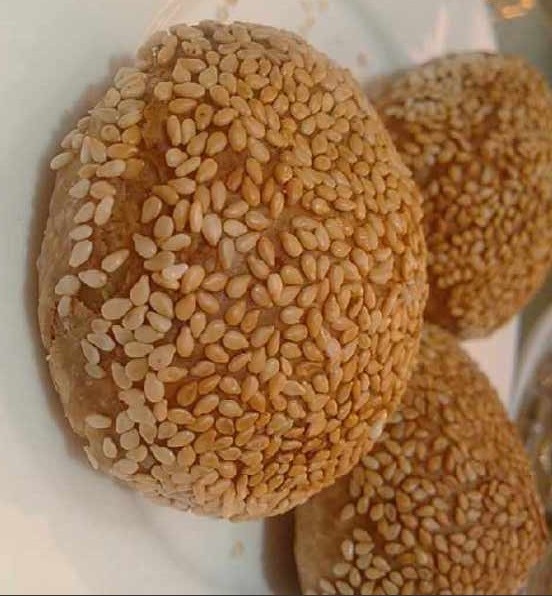 3、火烧:刚出锅的噢,个头大,闻着就香,芝麻味很浓,吃着直掉渣,外酥里面多层,夹肉吃都不错。