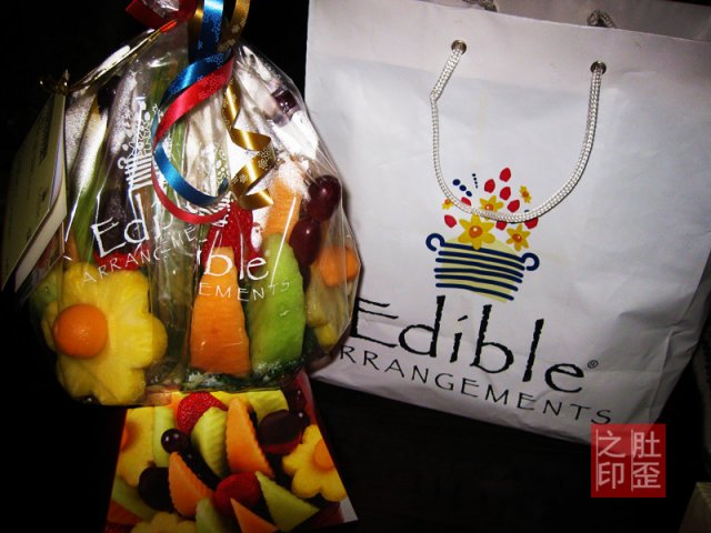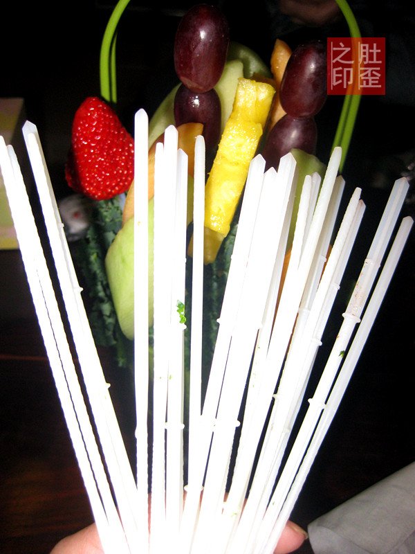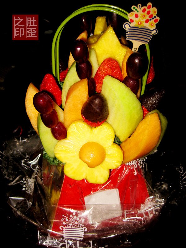 我就好奇这些水果是肿么变成这么美型的花篮捏,撸下颗提子一探究竟,原来是塑料棍的功劳。哈哈哈哈,一晚上干掉一半非常有辣手摧花的快感,数数我吃了多少根呐。鲜果花好吃,适合泡妞哄女友,在聚会庆典或生日趴上烘托气氛绝对让人耳目一新,很惊喜的礼物以后会是首选。