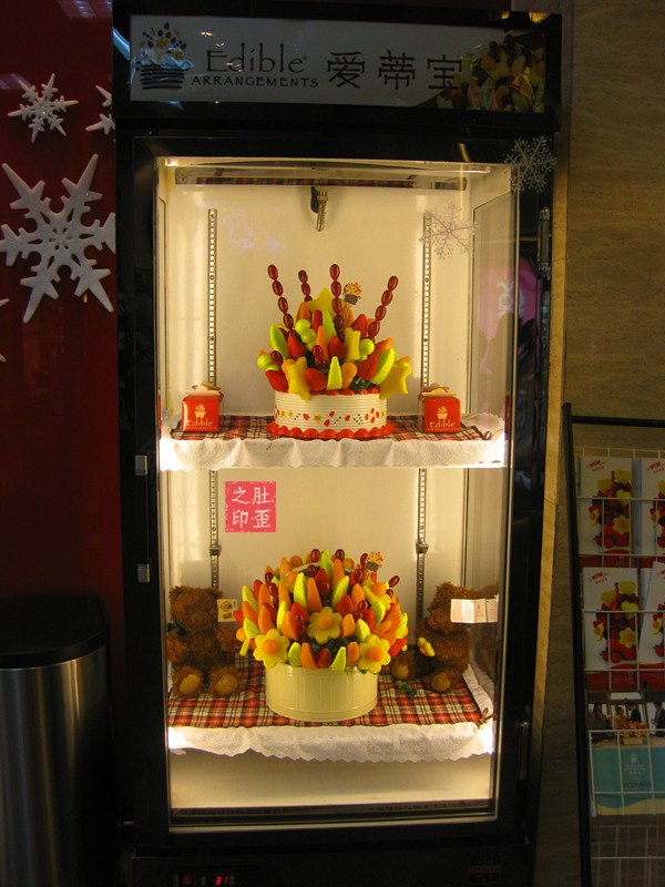 冰柜里美型的水果花是模型,不是真货。