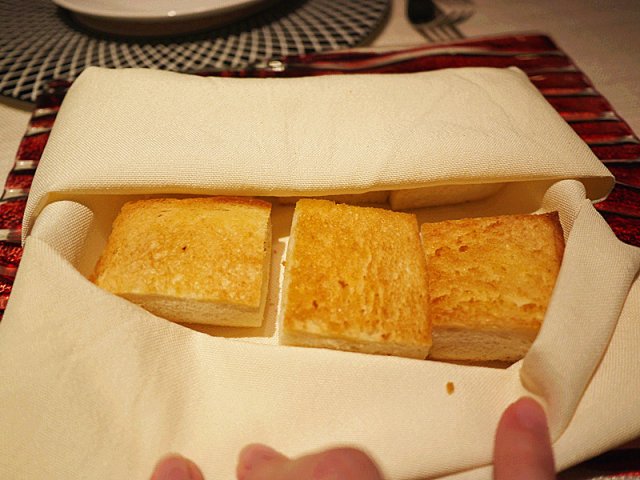 餐前面包佐银鳕鱼酱与意式番茄丁,热乎乎的餐包外脆里酥,