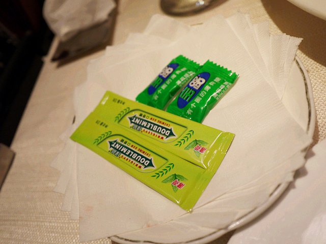 然后还有餐后的水果以及薄荷糖口香糖,