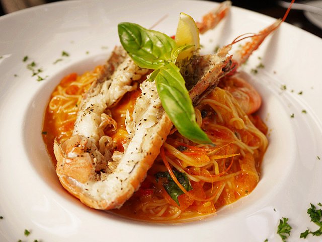一份主食然后加色拉还有例汤,我选了115的#冰岛海鳌虾天使面#,