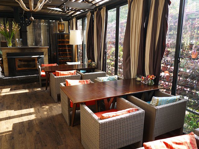 偷偷瞄了一眼二楼的阁楼貌似也很不错呢~~坐满了所以还是坐在花房了~