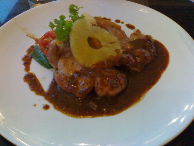 夏威夷猪扒:里面有两块,肉质很嫩,开始吃的时候很像妈妈自己在家弄的炸猪排,不过它又不像是炸出来的,这个我觉得是比较好吃的,薄薄的两块,很入味。