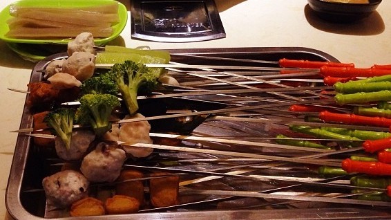 蔬菜啊,涮肉啊这些都很新鲜,也很干净,所有的串串都在自助的冰柜里取,很方便,价格是按签字的颜色来收费的,很明了。虾滑很不错,味道很鲜香,口感很滑嫩的;唯仪豆奶也是四川才有的饮品,甜甜的豆香味浓;主食是小烧饼,圆圆很厚实,吃着酥香,咸香口味,芝麻丰富,不错。