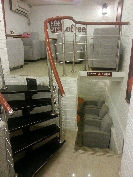 店面虽然比较小,但是麻雀虽小五脏俱全,很合理的利用了空间,向下挖深了点,然后隔开成了两层,一个地下室,一个就是小阁楼,地下室相对要私密很多,阁楼的话比较亮堂,感觉很温馨,而且也很干净。