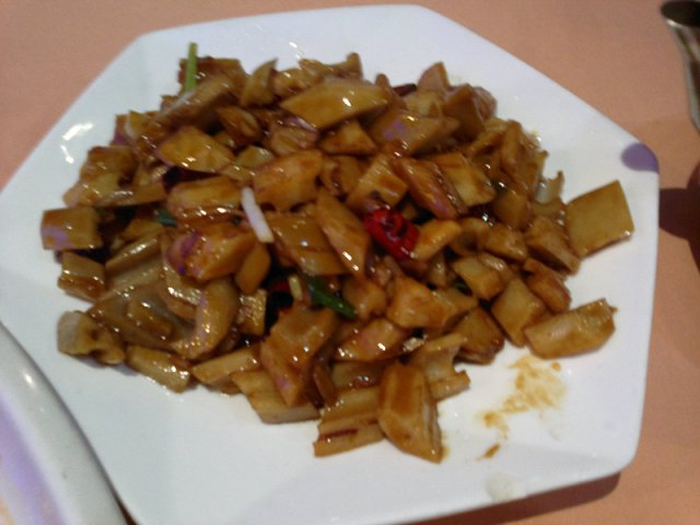 醋溜藕的味道真是很好,虽然被切成细碎细碎的,影响形象吧,但是醋的酸味与辣椒的结合得淋漓精致,非常美味,量也很足,只要十几块钱,很满意的一道菜品
