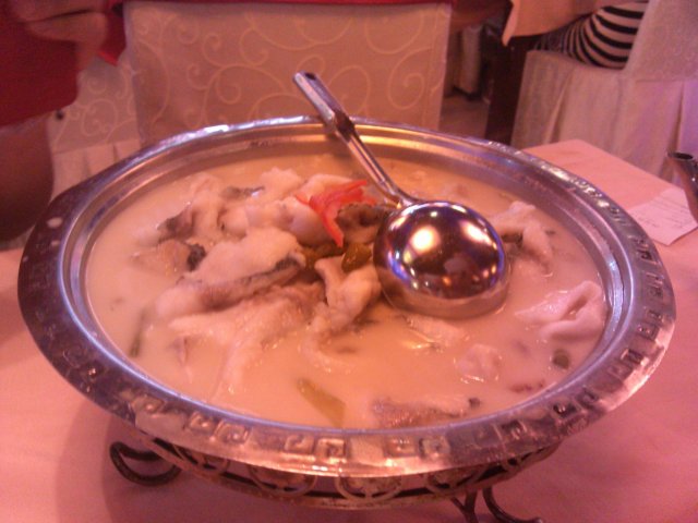 酸汤鱼,量很大,汤汁奶白,是非常有湖北特色的一道菜。鱼肉很新鲜,煮的很入味,吃着很鲜嫩,酸辣爽口,辣而不燥,里面还有碧绿的泡椒,吸收了鱼的味道,吃着酸辣爽脆。汤汁拌饭是我的最爱,又酸又辣的吃着非常的开胃。