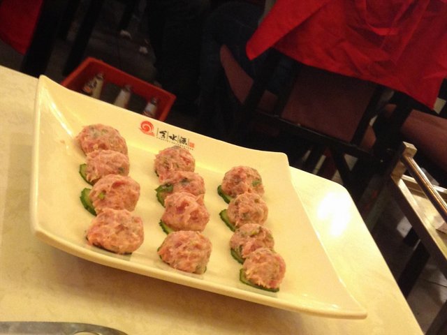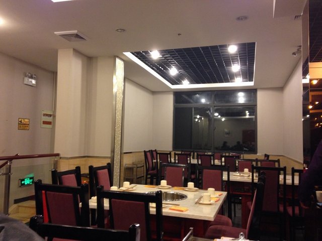 朋友女儿高考结束,来渝游玩,想吃火锅,正好这家店以前送的券还用完,且快到期了,于是便去了这家店,中午时分去的,在一楼大厅,正值炎炎夏日,店里客人不多,只有几桌,大厅空调开着,倒是比较凉快。貌似老板不在,只有服务员和领班。油碟仍是自助式的,食客根据自己需要随意搭配,看到俺一向喜欢的小米辣和香菜末都有,心里乐乐的。但是以前的南瓜绿豆汤今天没有了,而是换为绿豆稀饭。不过玉米羹还是有。绿豆稀饭熬得比较好,米粒和绿豆都很软烂,稠度适中,俺一连喝了二碗。锅底依然微辣红汤,这次又自带大虾10个,点的菜式如同往昔,鲜毛肚和方竹笋各点了二份,这二个菜几乎是每次必点,尤其方竹笋很薄,不象别家店那么老,不过他家的价格略贵,不太记得是15还是18元了,但物有所值。另外还点了以前没点过的三个菜式:嫩牛肉、牛肝、香菜肉丸子。这三个菜都值得再次推荐,嫩牛肉切成大大的块,麻辣腌制的,放锅里久煮捞吃,也不会觉得肉质过老。牛肝也是大大的薄片,放锅里涮几秒即食。香菜肉丸子也很嫩,吃起来不象别的店那样粉粉的感觉。不过这次的菜品点的略多,最后剩下二个素菜打包。一行8人,抵了一百元的券,人均四十多元,还是很划算的。