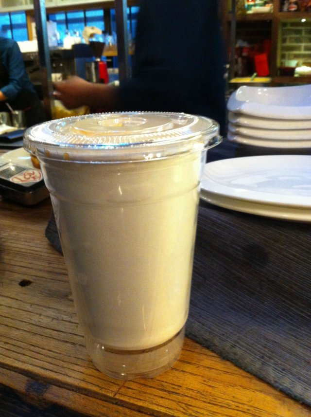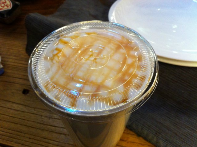 最后外带了,焦糖玛奇朵。口感香浓,咖啡豆是ILLY的,现场磨制,咖啡浓郁的香气带出了焦糖的香甜味儿,混合在一起真是滴滴香浓