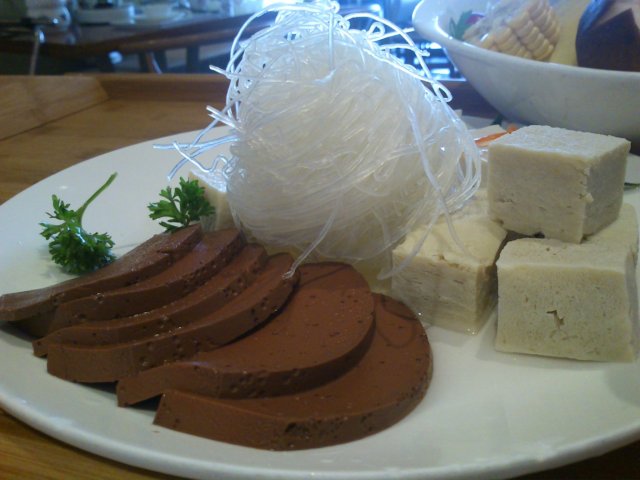 有鸭血,豆腐,冻豆腐,粉丝,都比较喜欢所以刚好上个拼盘什么都有了
