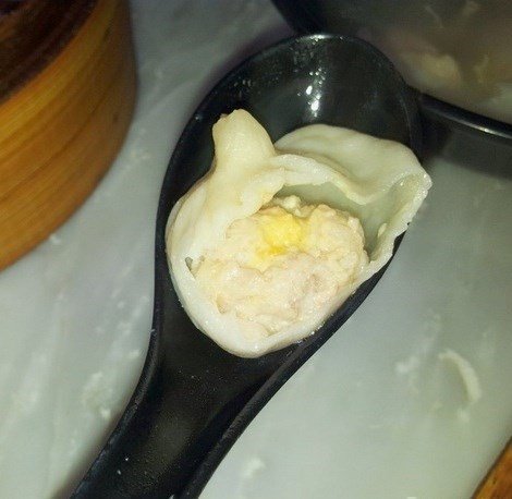咸蛋黄的味道重很多,也好吃很多!每个肉馅里包着一小块蛋黄,不错哦~小菲觉得正好,但我这个比她吃口清淡的人觉得稍稍咸了一点点,不过有咸蛋黄的加入,好像小笼的鲜味也同时提升了!