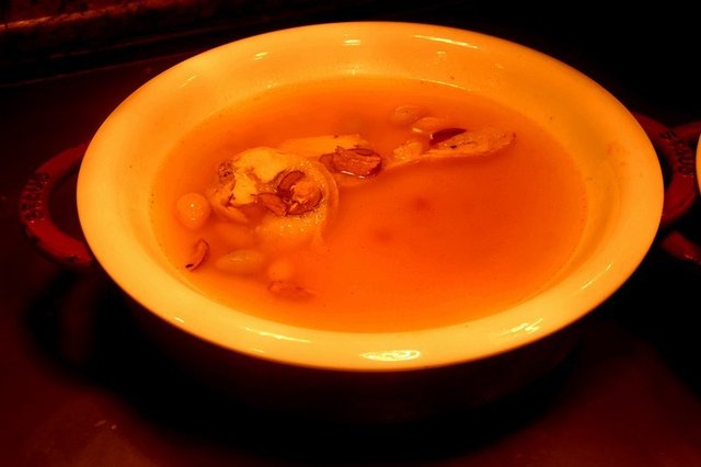 参鸡鸡汤好喝的 特别的是把参鸡和糯米还有鸡肉做成了紫菜卷