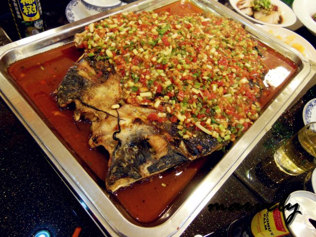 老板说,他家的豆豉,是特地从四川阳江购进的,那里的豆豉,味道鲜,但是不咸,用来做烤鱼非常的入味。的确在我们晚上吃的四种口味的烤鱼中,这条豆豉鲶鱼的味道是最好的。鲶鱼其实不是烤鱼中口味最好的,但是有了这阳江豆豉的佐味,鲶鱼既香嫩,又入味,不亏是店家点击率最高的一道烤鱼了。