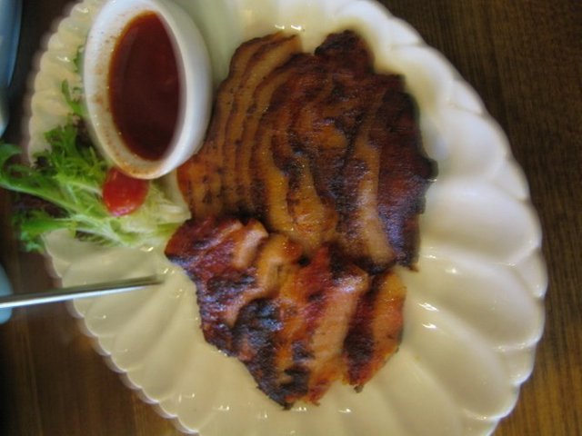 金牌碳烧猪颈肉(¥45.00):猪颈肉最大的一个卖点在于外皮的香脆,味道不错,赞一个,值得推荐。