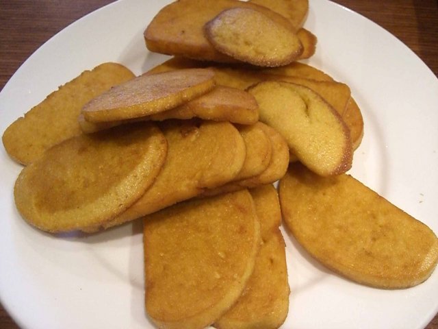 窝头切成小薄片,被炸成金黄色,外酥里软,趁热吃很香,就一口排骨,再来一块窝头片,很有农家乐的赶脚~~~旁边有桌客人看我们上了这个,问服务员MM是啥,然后也都跟风要了,呵呵,有时候其实我也一样,感觉别人盘子里的就是新鲜好吃^_^