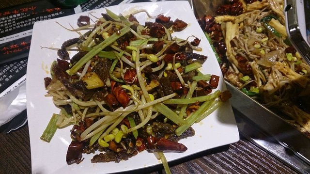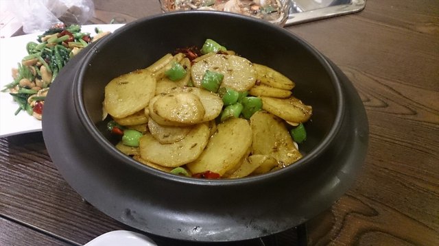 干锅土豆片,也是非常受好评的一道菜,本来土豆就是一种很容易入味的东西,而且比较禁折腾,是煮是烤都没啥问题,只要有汤汁,最后土豆软了,汤汁也会进去,再加上淀粉的口感,真是怎么做都好吃。这家的干锅土豆片也是,个人觉得比龙人的好吃,土豆片不那么薄,配菜辣椒吃起来很过瘾。