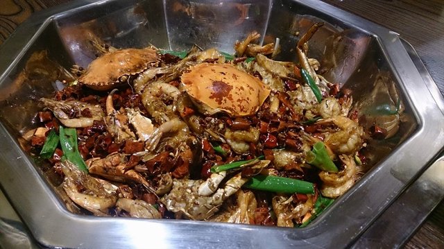 特色菜应该就是香辣虾和香辣蟹了,其实就是麻辣香锅的做法嘛,吃的时候记得把料拌开了,不然会觉得配菜没有味道。虾都是去了虾线的,这个好评,剖开也容易入味。