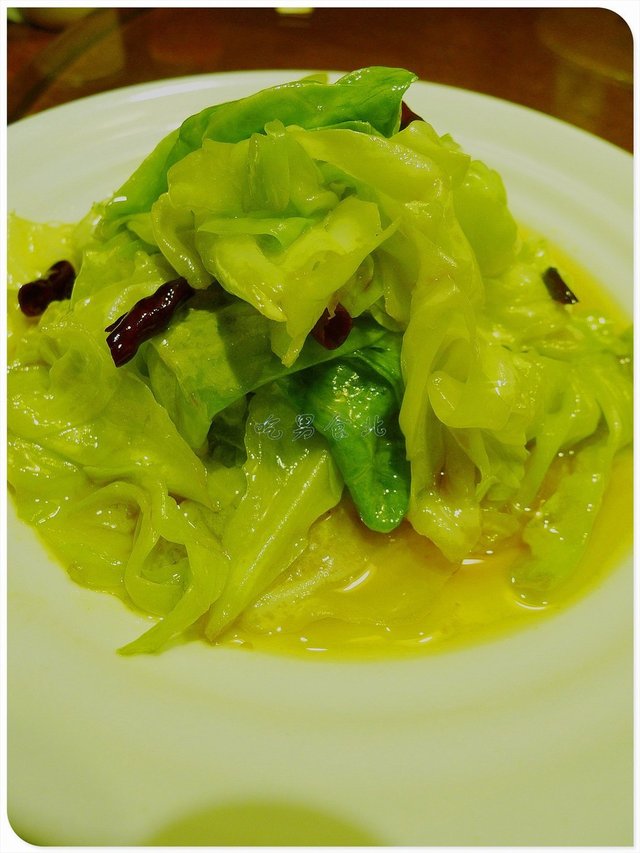 炝炒牛心菜,32元,牛心菜没听说过,感觉就是生菜吧,虽是炝炒但并不炝,嫩嫩的奶油生菜,吃起来很清新。