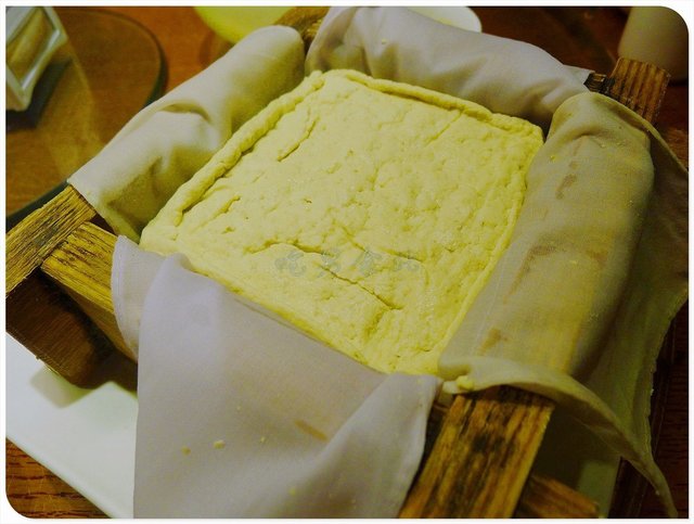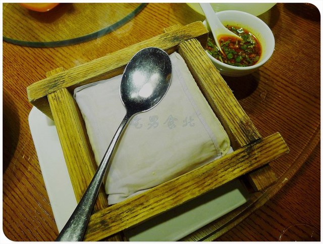 自制石磨豆腐,31元,自制豆腐的香味宜人,内部的孔隙也更大,蘸料汁的时候蜂窝结构能吸收不少的料汁进去,健康的豆腐总让人能多吃几口下去。
