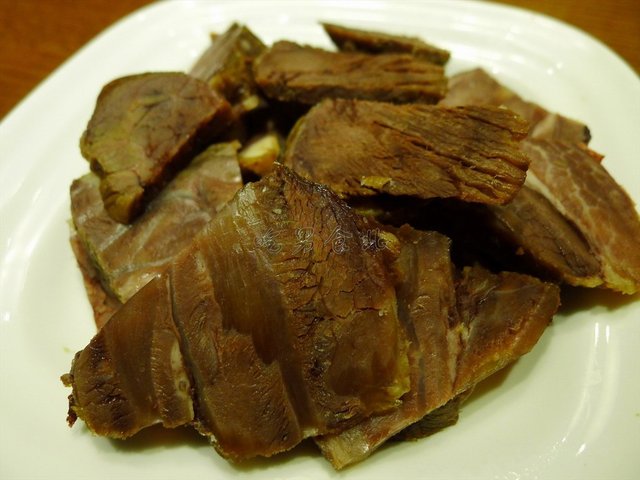草原酱牛肉,43元,干牛肉直接切上来,无需摆盘,牛肉的部位选取肯定是精挑的,肉质相当好,口感也相当的柔软,牛肉的丝纤维条理清晰,间或的肥牛肉和牛筋带来不同的感受。