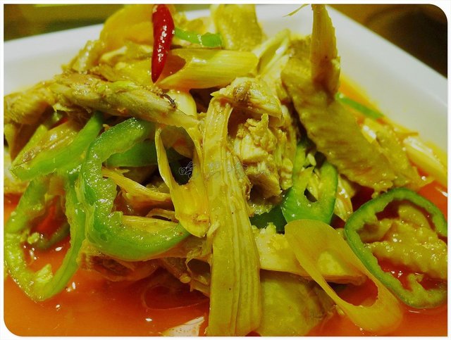 手撕椒麻鸡,33元,非常棒的一道凉菜,椒麻的味道相当好,配之以撕开的鸡肉,自然形成的纹路使肉能更充分地吸收调料的味道,融入自身,肉质也是相当嫩的。