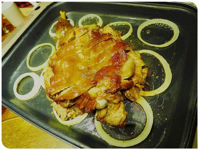 烤羊腿,268元,西贝的招牌产品,上桌之后就成为全桌的焦点。放在电烤锅中保持温度,整个过程不怕温度降低影响口感。油光锃亮的羊皮,在灯光的闪耀下熠熠放光,皮粘连着的肥肉,让皮的口感更香,皮下面盖着的是大块的羊肉,完全没有膻味,直接吃或蘸着料吃都可以,直接吃完全感受羊肉的原味,绵长的羊肉纤维冲击味蕾。
