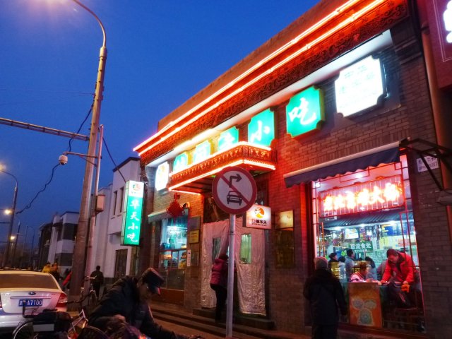 我去的时候是下班时间,店里人不少,看意思大部分是老主顾。这家店和我去过的很多家店不太一样的地方在于,别家大都是以小吃为主,而这里的大菜比较多,牛羊肉、鸡鸭鱼、凉菜、素菜、主食各种炒饭拉面之类的一应俱全,一面墙上一块绿色的大板子上密密麻麻写着菜单,当然,像驴打滚、豌豆黄、豆腐汤、面茶之类的小点心肯定也不会少。