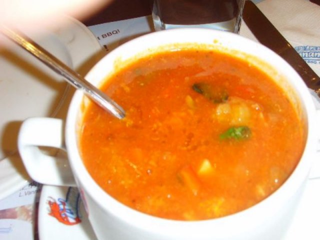 泛纳宾黄金虾蓉汤(个人评价:★★实在抱歉,我对这个汤不感冒,里面有几颗小虾粒,有些南瓜味的感觉,虽然汤蛮稠的,也奶油,但实在让我提不起兴趣来)