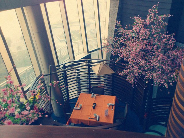 正好在金茂附近办事,中午的时候朋友问想吃啥,马上就想到了这家,环境实在是太好了。可能到得比较早,店里还没什么人,不过很多位子已经被预定掉了,所以直接被带上了楼,设计得非常巧妙,利用了楼梯边上的空间,隔出了一个个小卡座,边上还用假的樱花装饰着,view也很好,又很隐蔽,既适合商务请客,也很适合情侣约会。