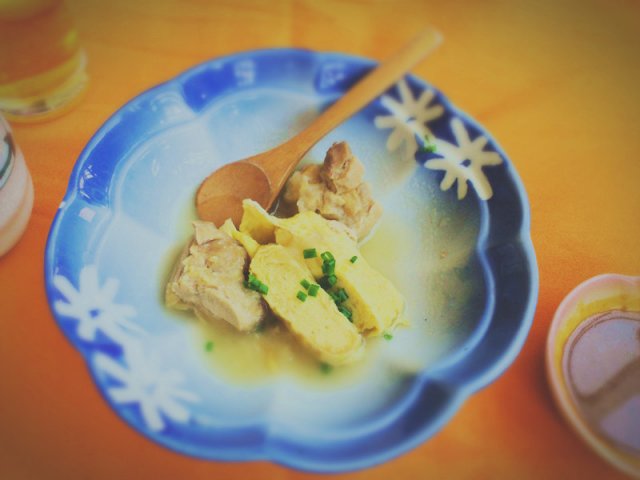这道菜看着特别朴素,但是味道却出奇的好,蛋卷里吸收了鸡肉的鲜味,鸡肉也带了蛋卷的甜味,的确是有经过慢慢熬制的,算是比较用心的亲子料理。