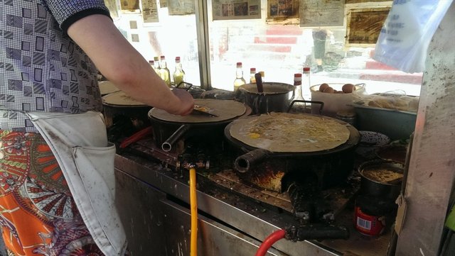 虽说前面没人,也等了差不多20分钟,这我才知道,原来主要等待的就是做饼的时间,虽说老板老板娘两人用六个锅,这六个锅的鸡蛋饼都出来也得20分钟左右,可以看出,已经在努力加快速度了,不过慢工出细活,再快就做出不来最牛鸡蛋饼了~