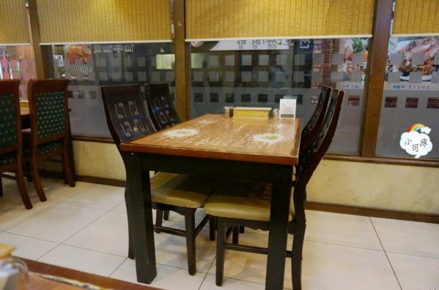 穿过略有些破旧的楼梯就来到这家餐厅门前,因为是开在楼里的餐厅,所以门面会显得小一些。餐厅里的环境一般,桌子上都有些斑驳的痕迹了,但是店里很干净。