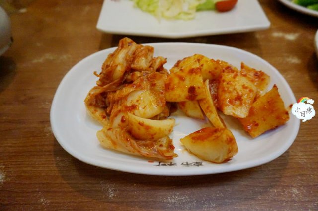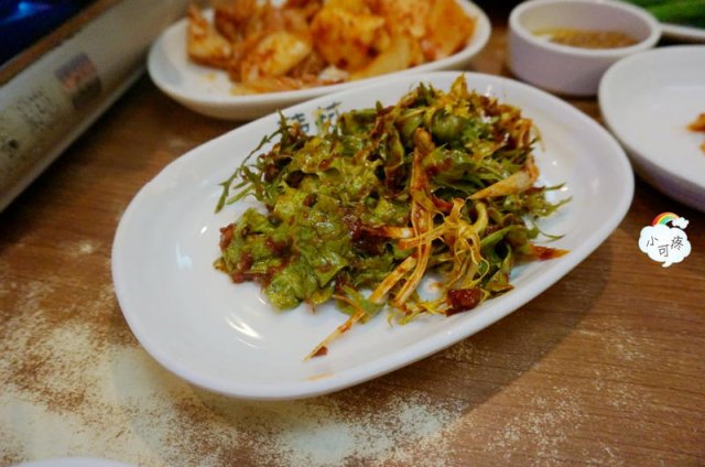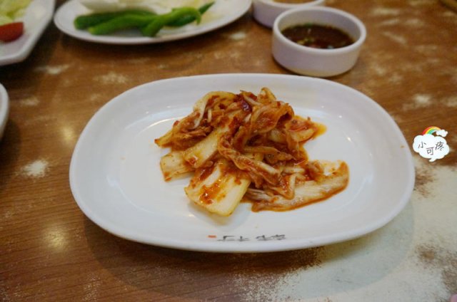 给所有免费赠送的小菜们来个合影。。赠送的好丰富。 这也是一种泡菜,味道也很不错,但是比较起来更喜欢泡菜萝卜。 赠送的生菜和辣椒,都非常的新鲜,很奇怪平时偶不怎么爱吃生菜,但是吃烤肉时去特别喜欢裹着生菜吃。
