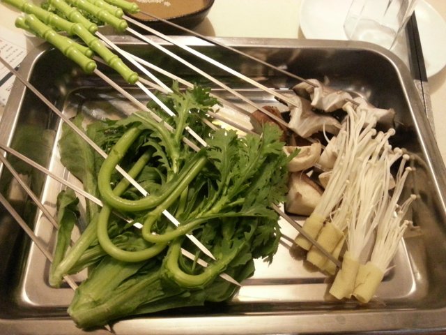 各种蔬菜串量都不大,一串上面没有多少,价格不贵,钎子都很长,很方便涮煮菜品。