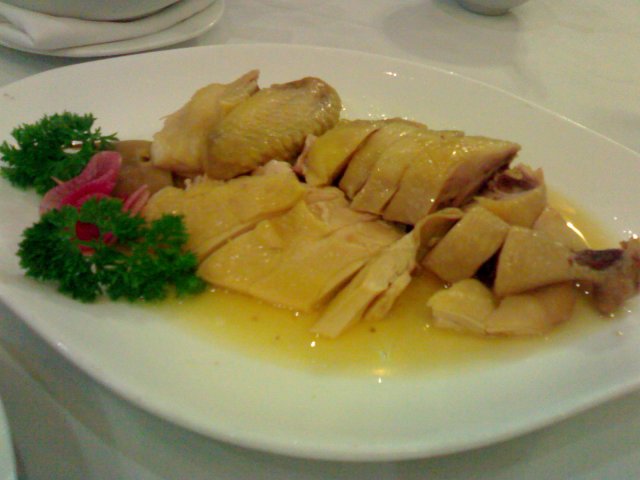 罗汉鸡(半只):厨师推荐。说是放养的鸡,不是圈养喂饲料的。吃起来果然如此,肉质有弹性,而且有股鸡的香味,不是活肉的地方,肉质都不老,不像现在外面有的地方卖的鸡,肉头很厚,但是吃起来木熏熏的。bf吃毛血旺的时候把辣油滴到鸡里面来还被我说了,叫他不要污染鲜美的肌肉,哈哈。38米
