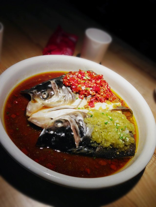 很喜欢这种一半绿一半红的剁椒鱼头,之前吃的有遇见全红或者全绿的。