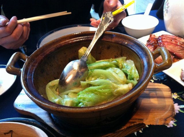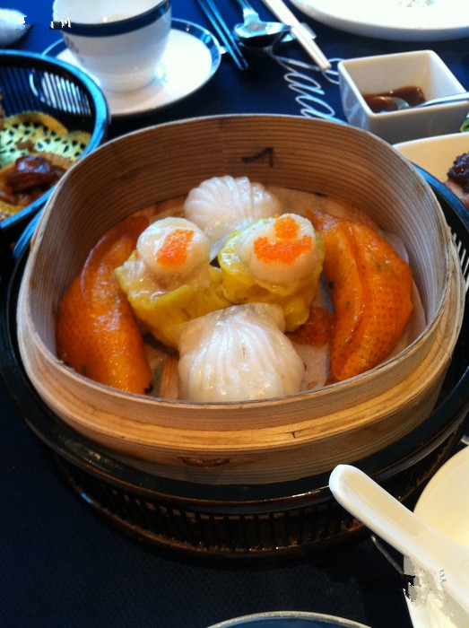 春节后上班第一天,又下雨,以为去的人会不多,没想到11点多拿的等位号,下午14点才吃到。中间等的时候实在太饿,去对面芮欧的B2吃了很多东西。等位的地方虽然很宽敞,但是座位太少,建议可多放点椅子,而且等位处没娱乐没小食,这么贵的店感觉服务不到位啊。带位的几位服务员都挺好看、挺有气质的。加收10%的服务费,但是服务很一般般,也不热情不积极,有个菜不太清楚,向点菜员咨询的时候,她都回答得模棱两可,感觉都不耐烦了,茶水都是自己倒,这服务费给得心不甘情不愿的。两个人因为也不是很饿,点了3个菜,一个虾咕唐生菜(78元,太咸太油了)、一个羊城雀笼点心(138元,6个品种,每种2个,蒸点也不配点醋,干干淡淡的不好吃,另外一层酥类、炸类也感觉没什么好吃,炸的点心很油的)、一个BB猪叉烧拼盘(120元,上来吓一跳,120元那么一丁点,这个菜就和一般港式饭店差不多,没多惊艳),再加上8元/位的茶水费,加上服务费和打包盒的费用,总共390元。周围基本每桌都点了101鲜果拿破仑,也基本都打包了,挺好看也挺大的,但拿破仑不是我的爱,所以没点。下午15点就停止午市点菜了,人气是颇高的,估计大家都是一次性尝新鲜的吧!