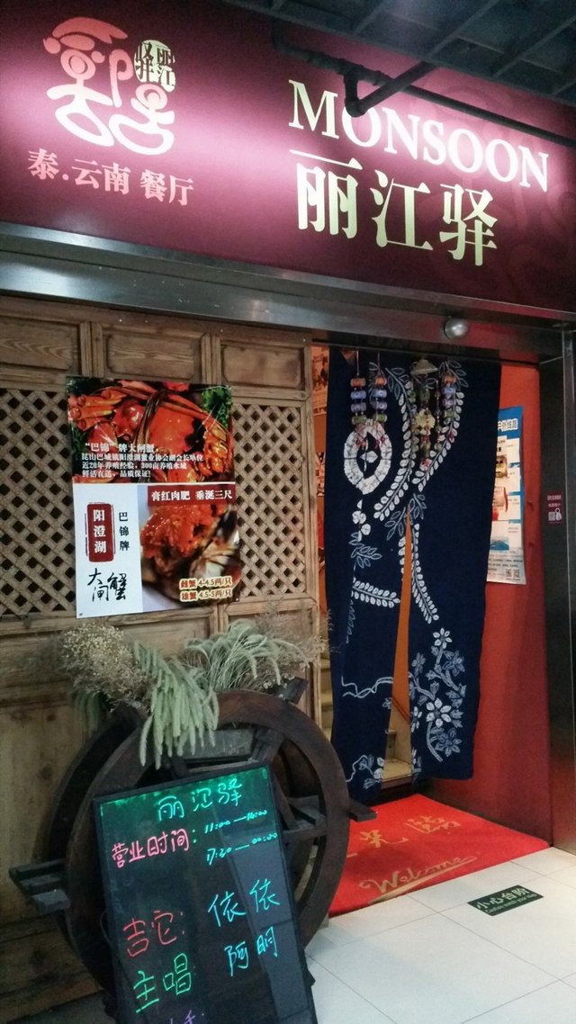 丽江驿藏匿在茂名南路的食尚谷里,第一次去的时候,是挨着门牌号码找过去的,门口似乎没有特别显眼的招牌,走进食尚谷大厅里,才看到一块块的餐厅指示牌,丽江驿在食尚谷的二楼,一楼的门口处有餐厅的海报。