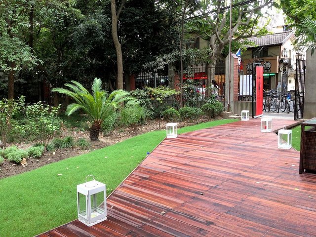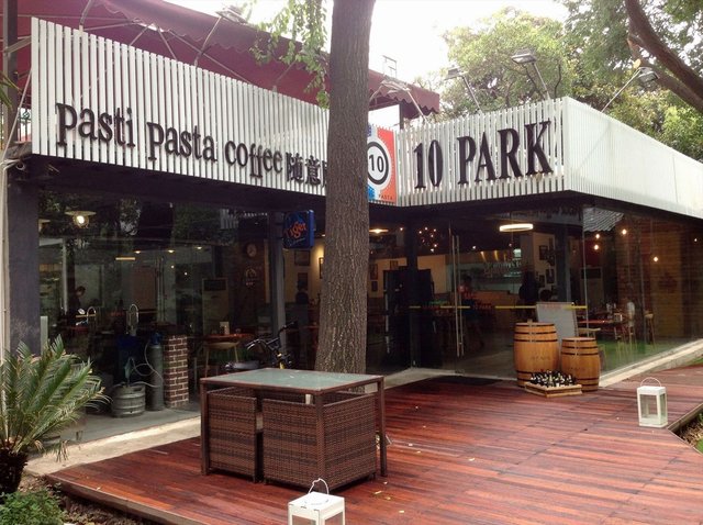 餐厅就在花园左边的一间平房里,落地玻璃大窗,里面的布置比较简洁休闲,小方桌摆放的蛮随意的。