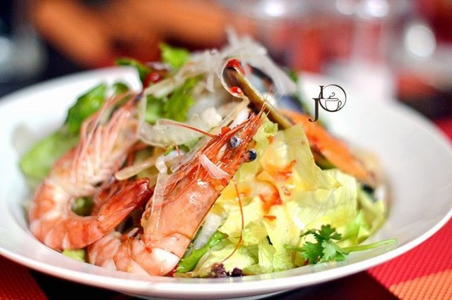 酸辣海鲜色拉 有点泰式的风味,酸酸辣辣的味道蛮好吃的,里面还有不少海鲜哦。