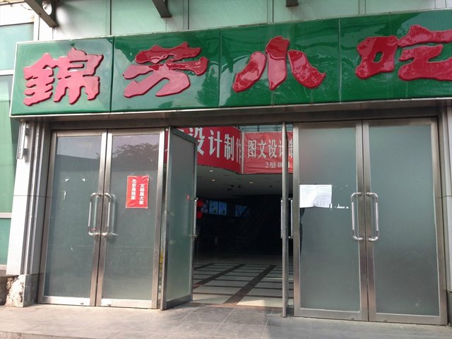 锦芳小吃开在磁器口附近,如果是坐地铁,5号线磁器口下,出战就能看见了,很好找。店开在一个大厦的一层,大厦看着没什么人气,门上还贴着什么告示,锦芳小吃就在这里的一层,当然这里的人气还是很旺的。