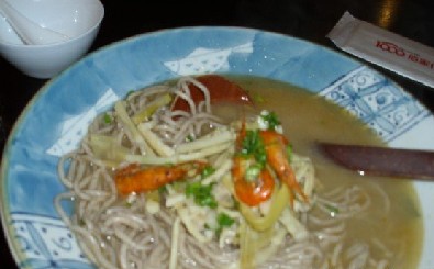 点了一份双鲜荞麦面,有笋、河虾,汤很鲜美,虾很小,味道一般,荞麦面算是粗粮吧,第一次尝试感觉吃口还不错,很有嚼劲,没令我失望。