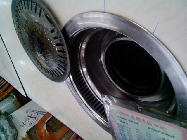 :(我们去的时候正好赶上店内安装新的空调,还是挺乱的,我们做的位置附近正好是一个空调安装点,安装的师傅一直在那拆那个就机器,额,比较乱。店内服务员的态度一般吧,没有之前看到的宣传中写的那么恐怖,可能也是我们去的时候人也不多,所以还算是比较礼貌吧。看了眼菜单,东西确实比较便宜,各种肉基本都是十几二十块钱一盘。不过饮料神马的略贵,他家也禁止外带饮料,为防止不愉快,我俩根本买带水。
